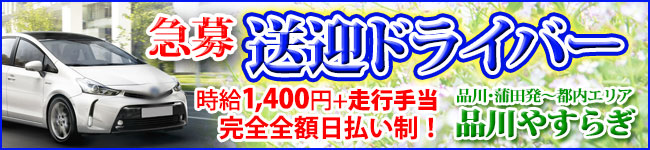 送迎ドライバー 委託ドライバー急募・募集枠2~3台! 本業・または副業でお考えの方も大歓迎です。(車輌持込制) 内勤・運営スタッフ 躍進中のマッサージデリバリー! 「品川やすらぎグループ」で私たちと一緒に更に上を目指しませんか!! Web担当スタッフ PC作業、Web関連作業がメインのお仕事です。画像加工ソフト経験者、Webデザインにも興味のある方! プロカメラマン(委託) 委託・契約 プロカメラマン募集! (風俗業界撮影経験者、業界未経験者どとらも歓迎!)